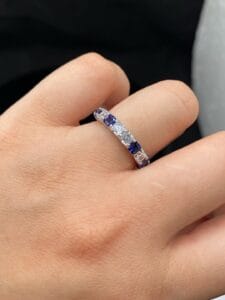 Celebrate your love story with our enchanting 1Ct Blue and White Princess Channel Engagement Band Ring. This captivating ring features a stunning combination of blue and white princess cut diamonds set in a channel setting, symbolizing a lifetime of love and commitment. It’s the best proposal band for your special moment, showcasing elegance and style….