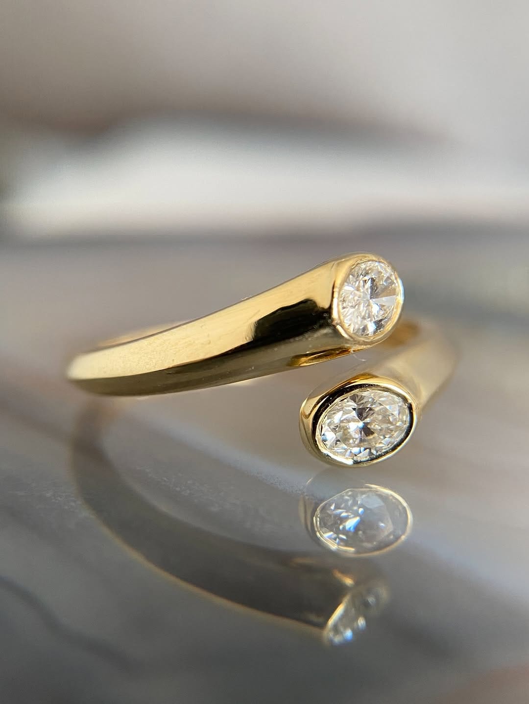Searching for a thoughtful anniversary gift? This ring is a meaningful way to celebrate love and commitment. The oval cut stone shines with brilliance, while the bypass shank adds a unique, symbolic touch. It is a jewelry piece that represents unity and everlasting care.