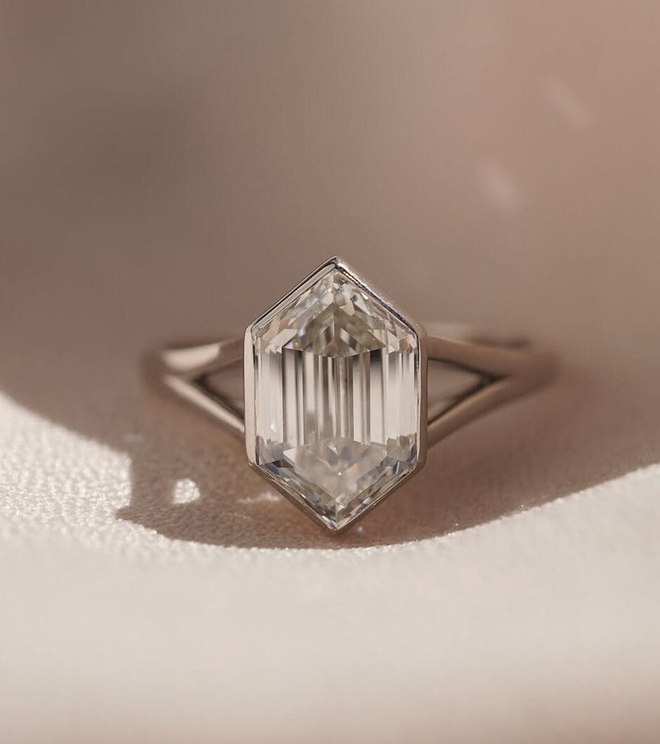 1.80Ct White Hexagon Cut Bezel Set Ring | Split Shank Modern Birthday Gift Jewelry For Women