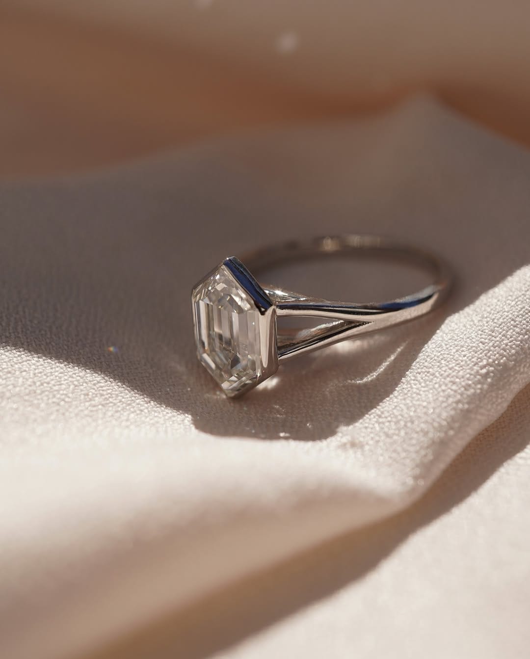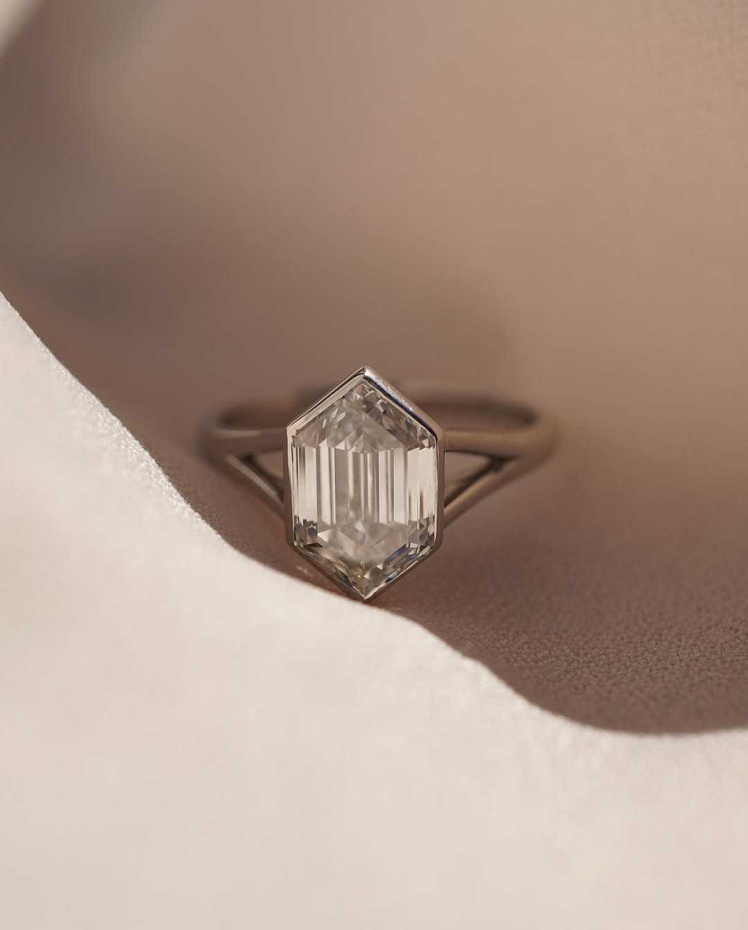 Looking for a thoughtful gift? This hexagon bezel ring makes a wonderful birthday surprise or anniversary present. It pairs beautifully with other designs from our collection, such as our halo engagement rings or trilogy gemstone rings. If you prefer minimalist styles, our solitaire rings also complement this unique design.