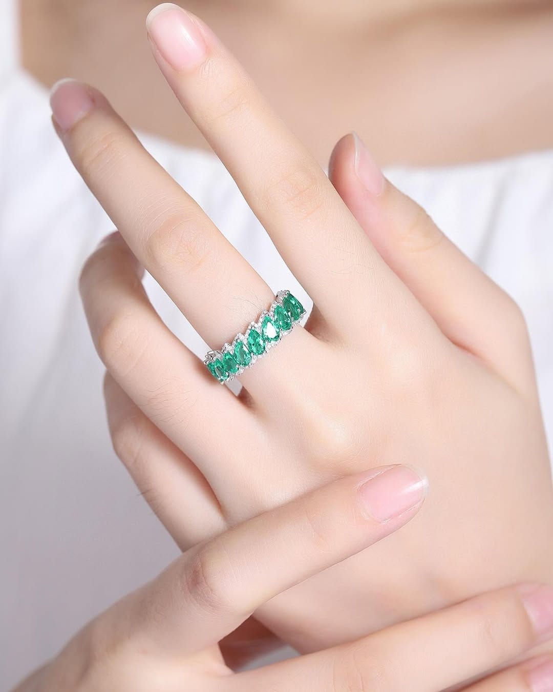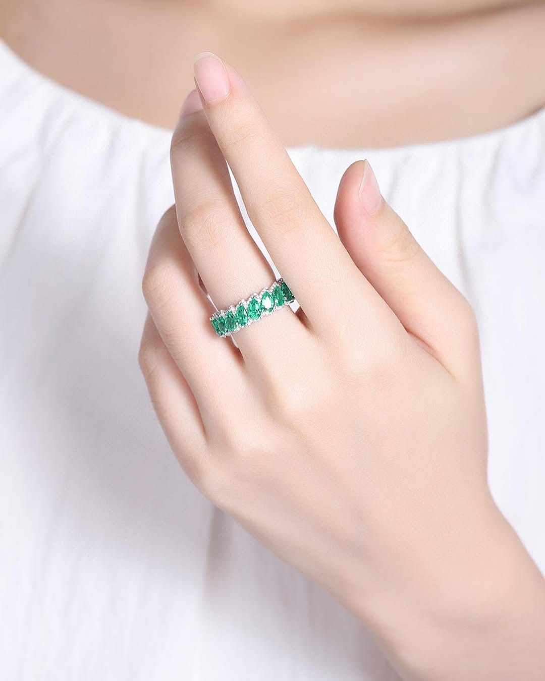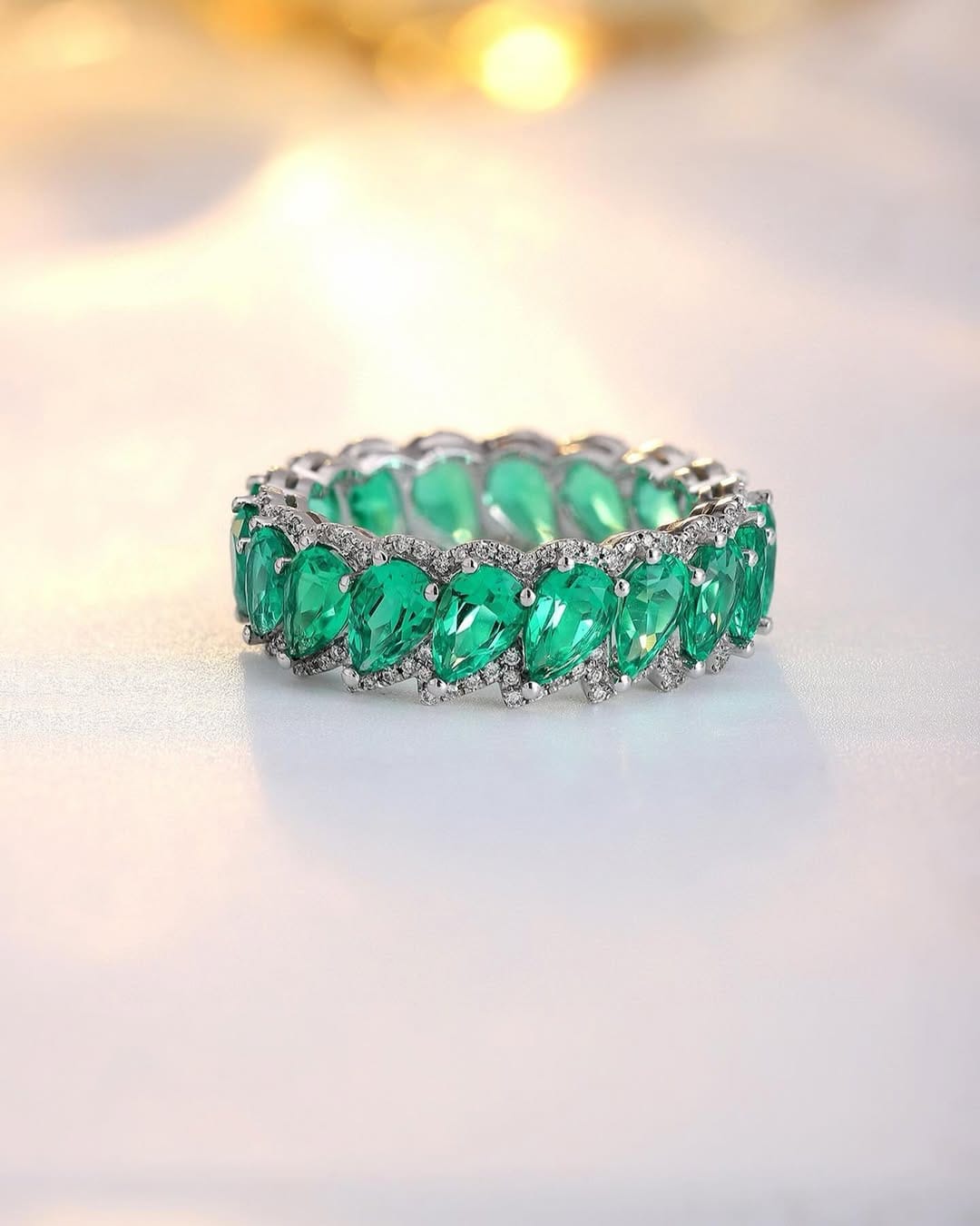 3.80Ct Green Pear Cut Full Eternity Band Ring | Anniversary Gift for Wife | Luxury Designer Jewelry for Women